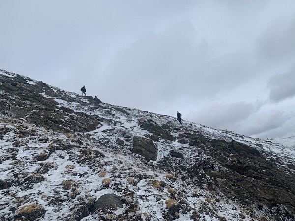然而盡管做好了充足的準備,定位區域嚴酷的環境仍然超出了大家的想象。許多塔位位于坡度陡峭的高地,攀爬難度極大,特別是一些只有灌木雜草的山坡,無從借力,隊員們只得手腳并用,緩步前行。有時好不容易爬到山頂,發現不遠處就是萬丈深崖,不由讓隊員們驚出一身冷汗。