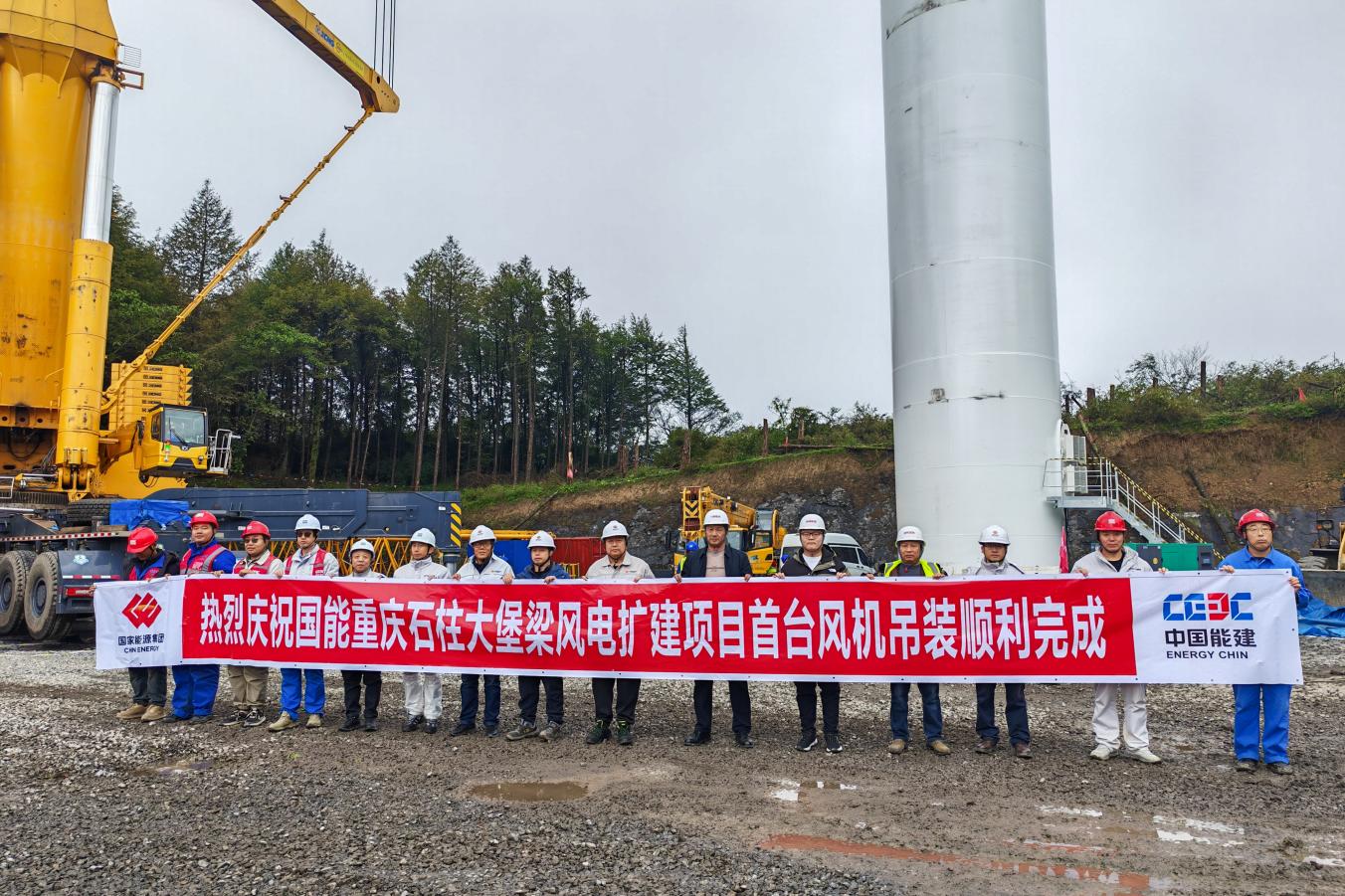 10月21日,第一個施工窗口出現,第一片葉片成功“牽手”輪轂。10月24日,團隊再次抓住短暫的天晴時機,完成了第二片葉片的吊裝。10月26日,當最后一片葉片在指揮員精準的指令下,與輪轂完成最終螺栓緊固時,現場爆發出熱烈的歡呼:國能重慶石柱大堡梁風電擴建項目首臺風機吊裝順利完成!