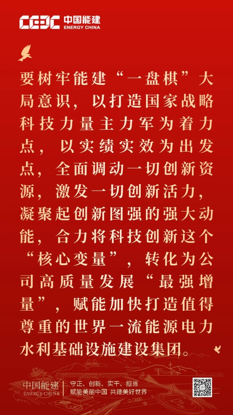 公司2026年工作會暨二屆一次職代會深入貫徹習近平總書記重要指示精神,旗幟鮮明地將“堅持創新驅動、科技強企”作為“十五五”開好局、起好步的“五大核心原則”之一,要求始終把科技創新作為第一動力,充分發揮科技創新對于企業發展的引領、驅動、支撐作用。公司上下要樹牢能建“一盤棋”大局意識,以打造國家戰略科技力量主力軍為著力點,以實績實效為出發點,全面調動一切創新資源,激發一切創新活力,凝聚起創新圖強的強大動能,合力將科技創新這個“核心變量”,轉化為公司高質量發展“最強增量”,賦能加快打造值得尊重的世界一流能源電力水利基礎設施建設集團。