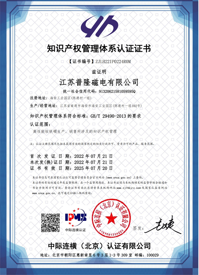 知識產權管理體系認證證書